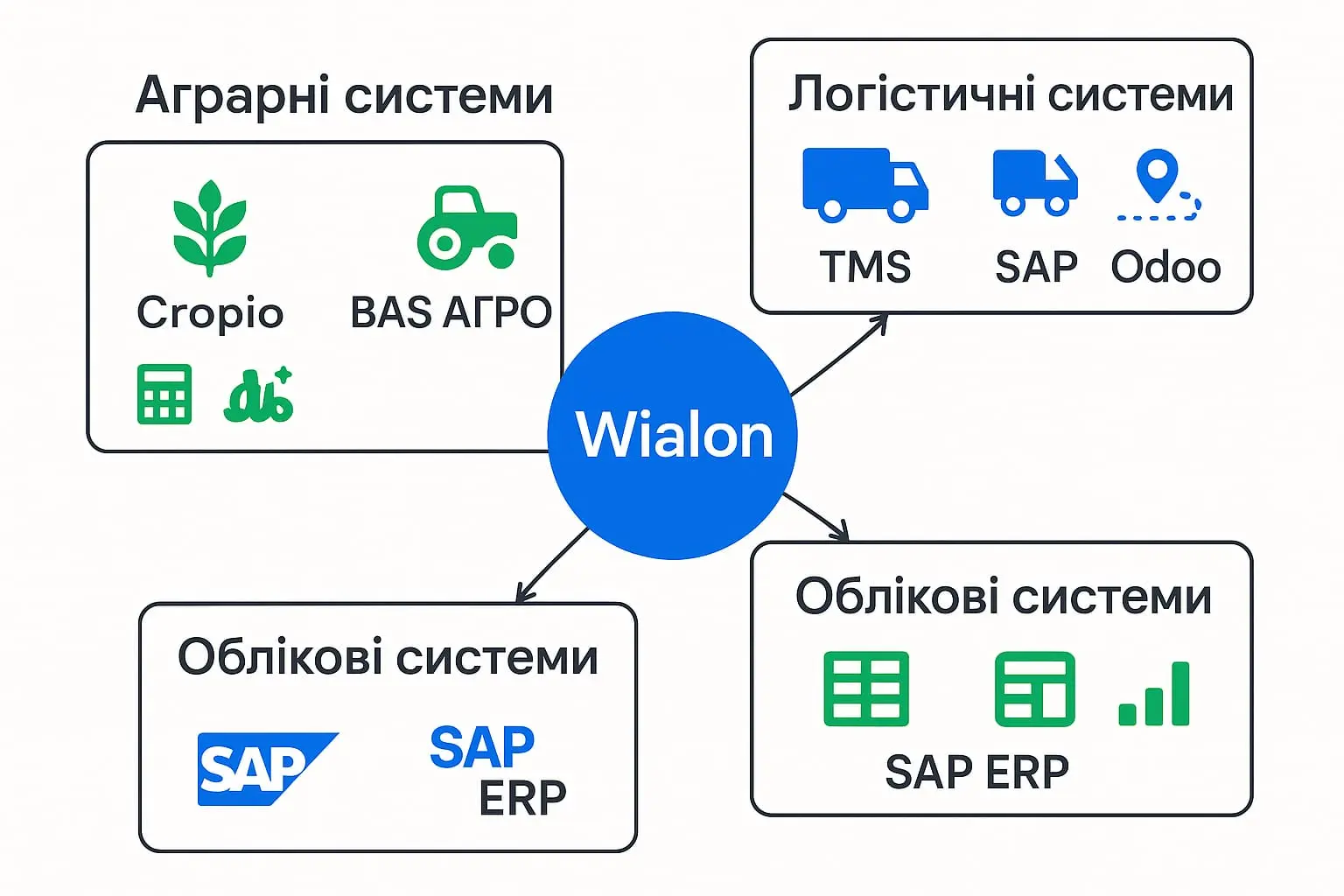 На практике мы видим, что клиенты используют Wialon вместе с разными типами систем — в зависимости от отрасли.